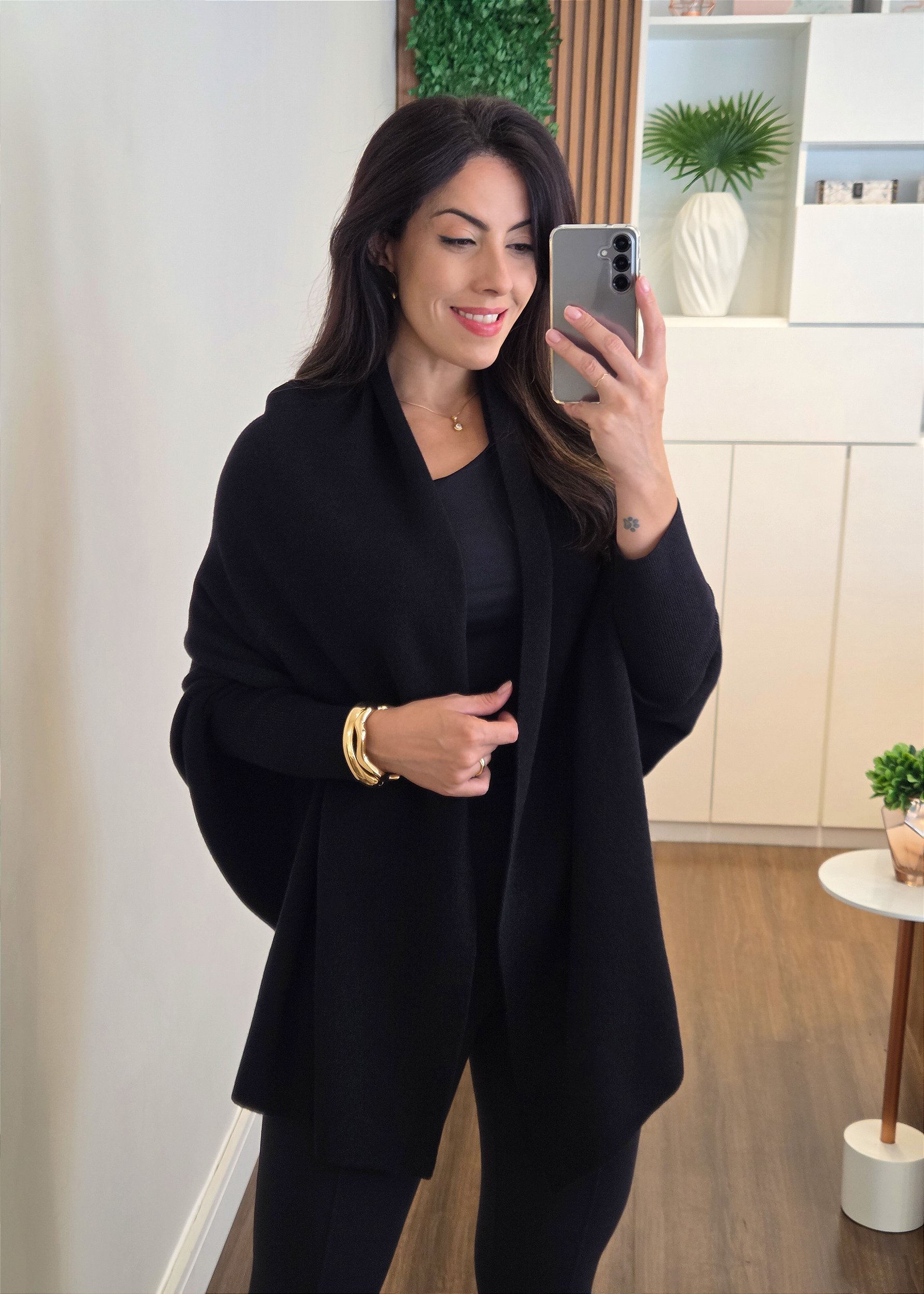 Capa Tricô Preta com Manga Canelada