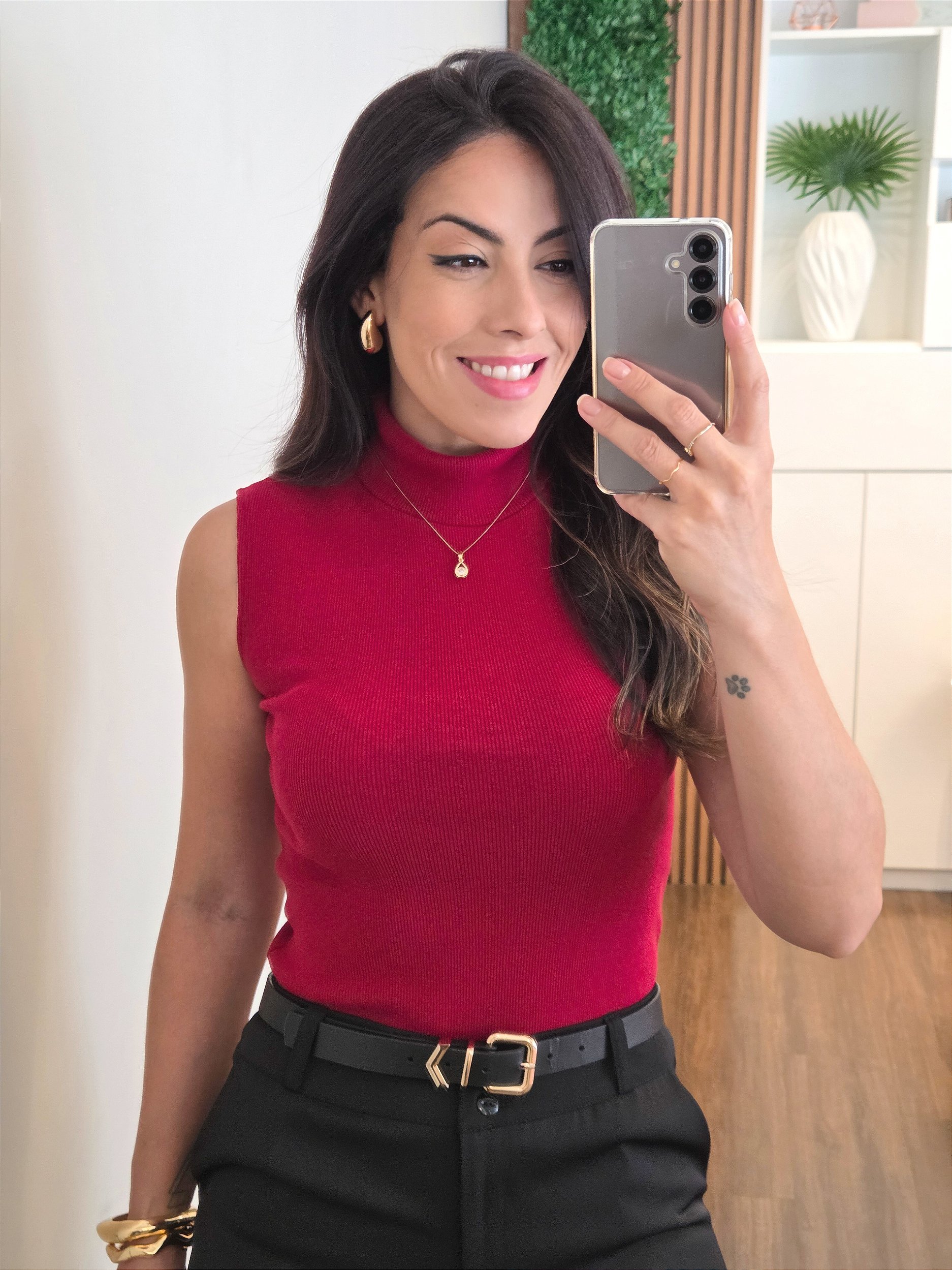 Regata canelada confeccionada em algodão com elastano, tecido encorpado, com textura canelada, modelagem ajustada e gola alta, modelo que traz conforto e estilo.
