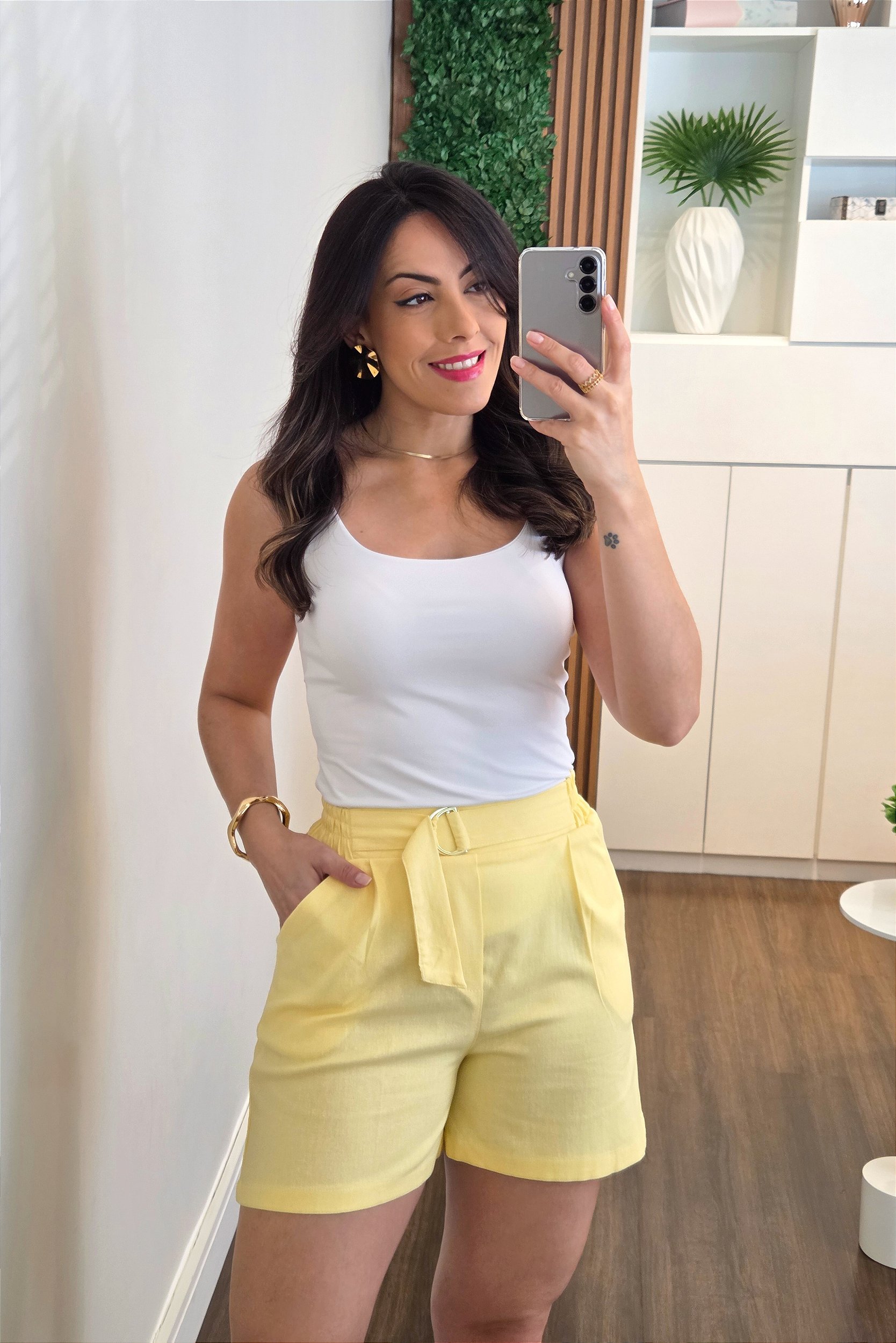 Shorts viscolinho amarelo